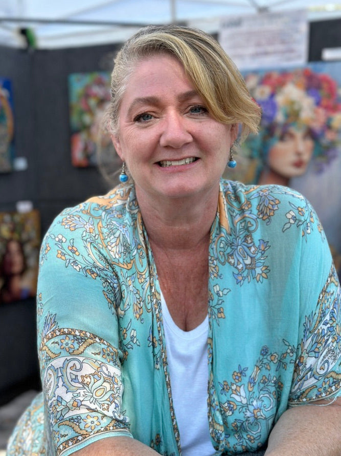 Donna Magana is a mixed media artist specializing in decorative portraiture. Her work combines traditional portraits with bold color and whimsical collage resulting in imagery that evokes a sense of beauty and wonder.
